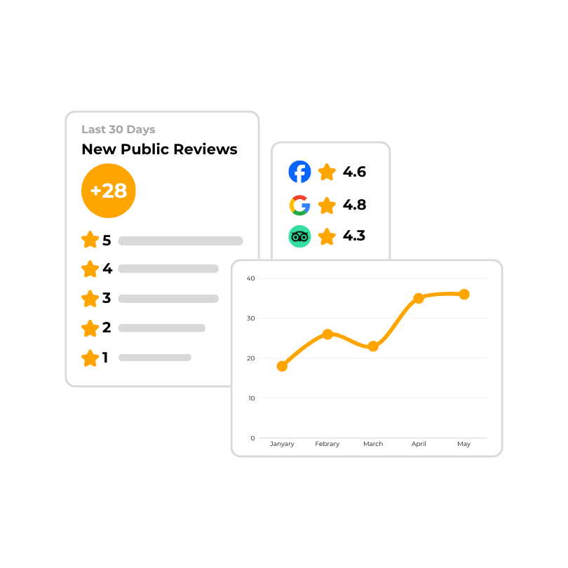✓ Collect 5-star reviews from Google, Facebook, and Yelp.